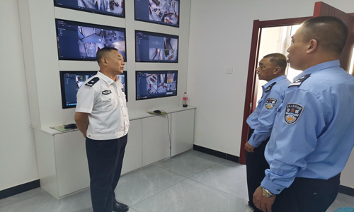 正义之声网讯【肖建光】近日,吉林省高级人民法院法警总队总队长王军、白山市中级人民法院支队长佟清岩莅临临江法院对警务保障工作进行检查指导。此次检查重点围绕羁押室、监控室、警用装备室、专用囚车等“六专四室”改造情况、用于实战训练的体能训练室、安检系统的设施配置以及各项基础设施建设情况。